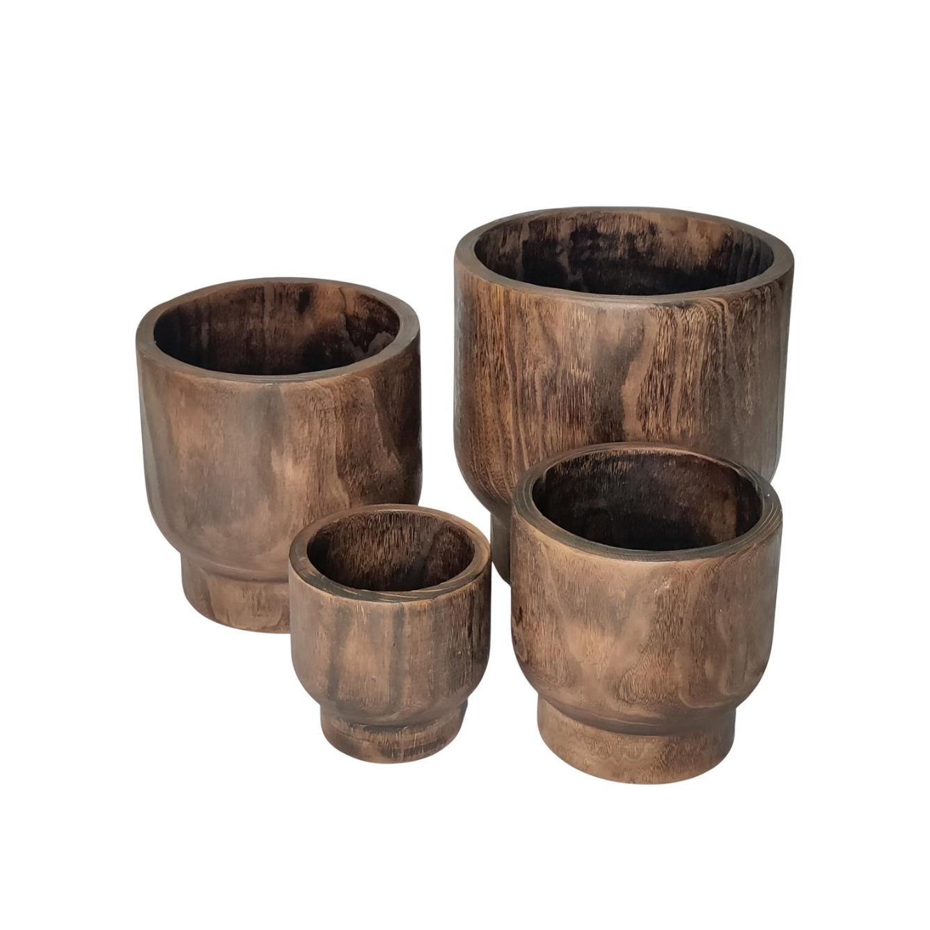 Name: 7.9" Tall X-Small Round Wooden Planter "Paia"